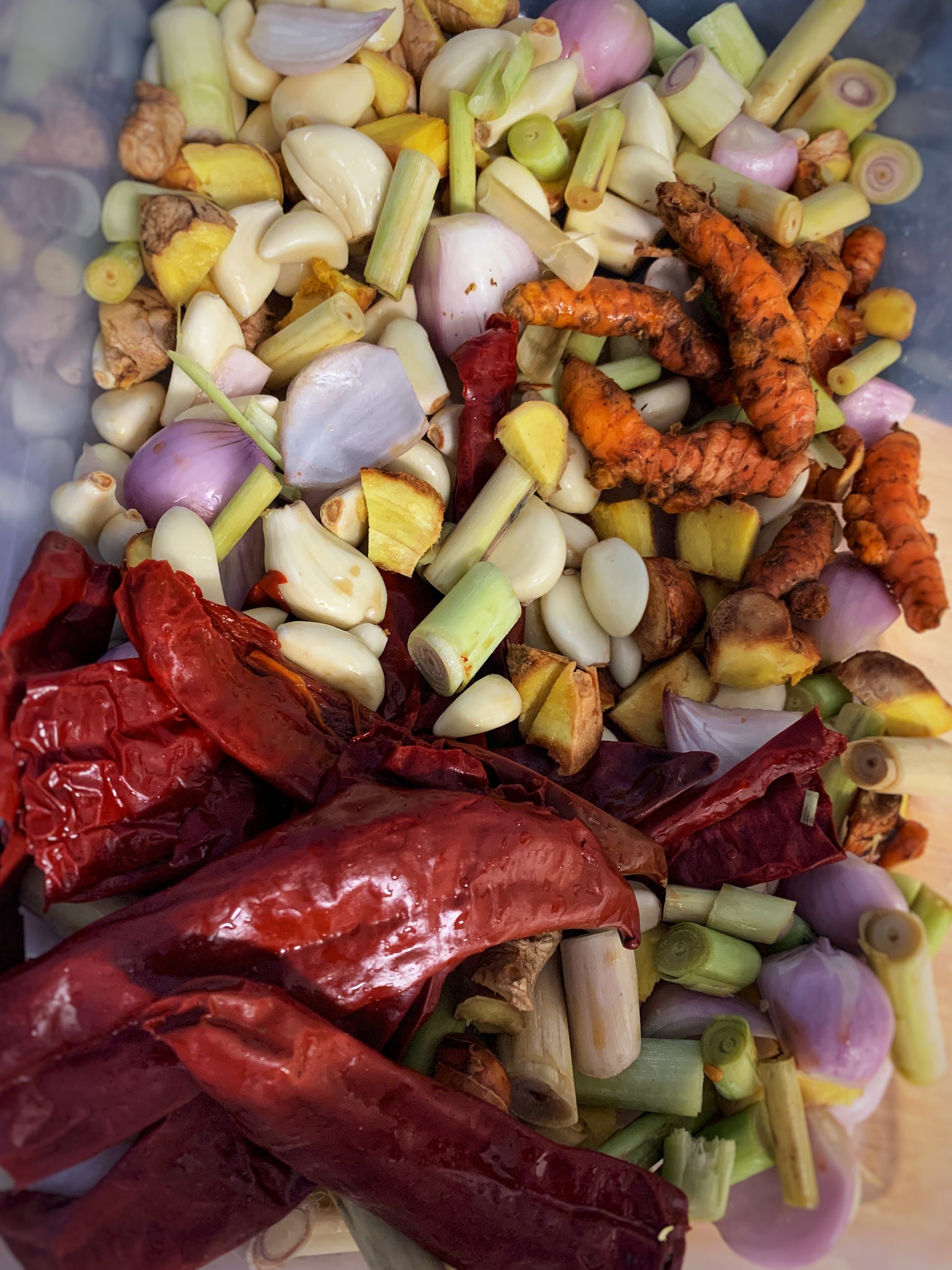 wild caught salmon filet w fresh made thai red curry w cilantro, thai basil, cherry tomato, bamboo strips, peppers and thai eggplant